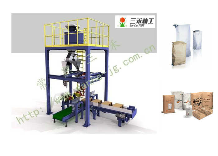 Cân đóng gói điện tử bao gồm bộ phận cân, máy khâu, thiết bị vận chuyển, hệ thống khí nén, hệ thống khử bụi, kiểm soát đóng gói định lượng, ... toàn bộ quá trình cân được điều khiển bằng PLC và hoàn thành tự động.
