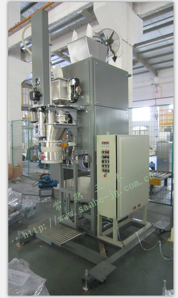 Cân đóng gói điện tử bao gồm bộ phận cân, máy khâu, thiết bị vận chuyển, hệ thống khí nén, hệ thống khử bụi, kiểm soát đóng gói định lượng, ... toàn bộ quá trình cân được điều khiển bằng PLC và hoàn thành tự động.