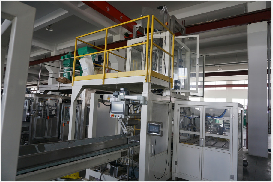 Can made into semi-packing and palletizing line with conveyors, sewing machine, heat sealer, fall bag conveyor, reshaping conveyor, weight checker, reject conveyor, pallet magazine, stacker.