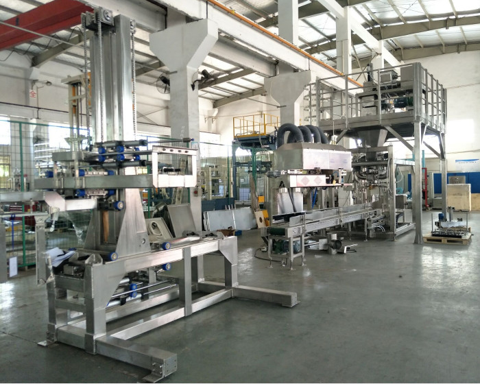 Hệ thống được áp dụng để định lượng tự động cân, chiết rót, nhào trộn, và cộng dồn khối lượng và thời gian, khâu / niêm phong nhiệt và vận chuyển với trợ lý thủ công đối với vật liệu dạng bột trong nhà máy sản xuất bột hoặc vật liệu như dạng viên.
