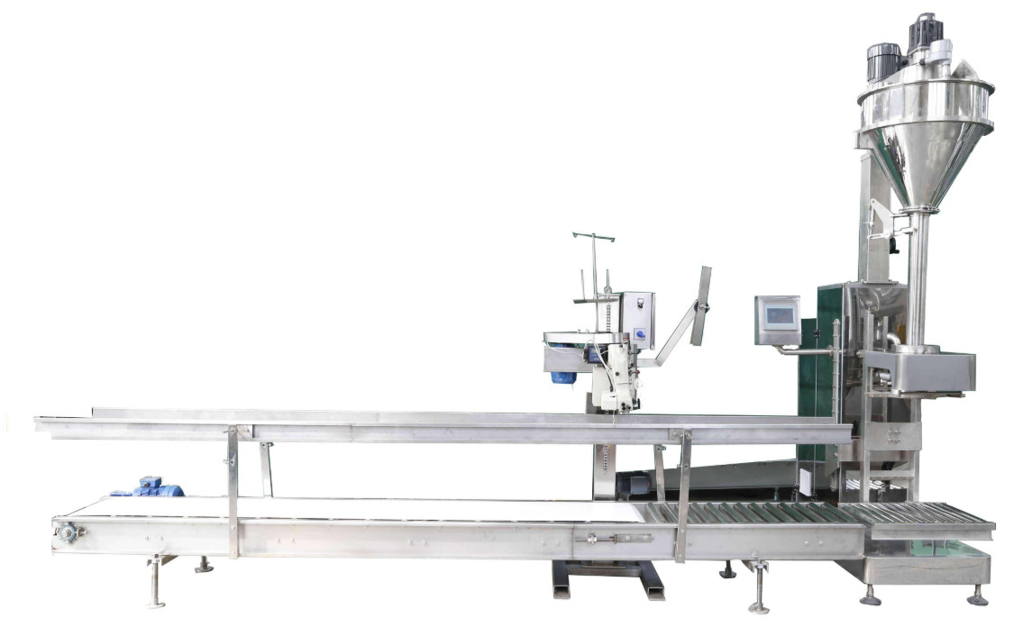 - Có thể được sản xuất thành dây chuyền bán đóng gói và xếp pallet với băng tải, máy khâu, máy hàn nhiệt, băng tải bao rơi, băng tải định hình lại, máy kiểm tra trọng lượng, băng tải loại bỏ, tạp chí pallet, máy xếp.