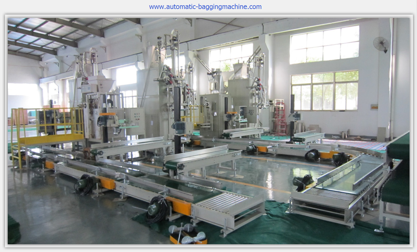 Có thể được sản xuất thành dây chuyền bán đóng gói và xếp pallet với băng tải, máy khâu, máy hàn nhiệt, băng tải túi rơi, băng tải định hình lại, máy kiểm tra trọng lượng, băng tải loại bỏ, tạp chí pallet, máy xếp.