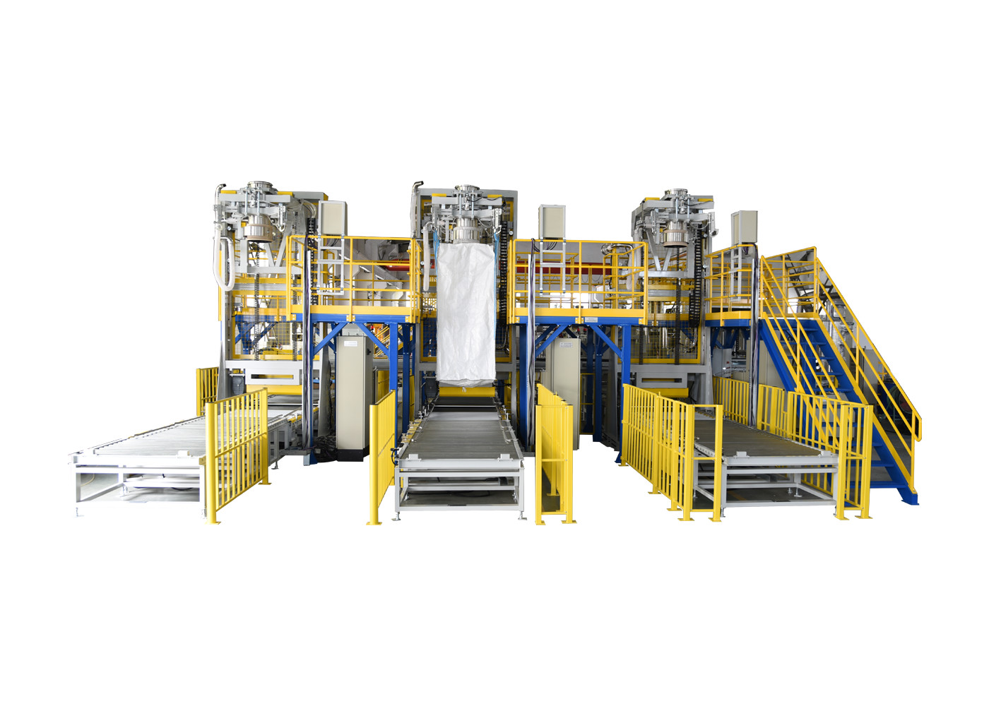 Đặt túi thủ công -> Đổ đầy tự động -> Cân tự động -> Xả túi tự động -> Vận chuyển túi lớn -> Vòng tiếp theo