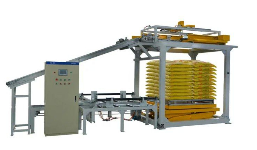 Palletizer xếp chồng các vật liệu (trong thùng giấy, túi dệt, thùng, v.v.) hoặc các mặt hàng có hình dạng thông thường được đóng gói / không đóng gói trên pallet (bằng gỗ) theo một cách sắp xếp nhất định một cách tự động.Sau khi xếp nhiều lớp, toàn bộ pallet sẽ được vận chuyển ra ngoài để đóng gói thêm hoặc đến kho bằng xe nâng.Nó thích hợp cho việc xếp chồng lên nhau của các túi và hộp sắp xếp so le trong quá trình sau khi đóng gói.