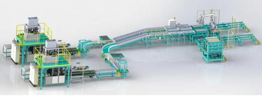 2. Dây chuyền đóng gói & xếp hàng tự động 25 kg (túi loại van),